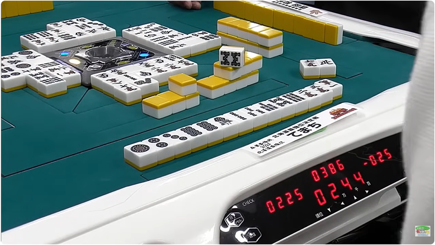 親のリーチが掛かっている状況で123の高め三色の聴牌をしたのですが、高めの一萬は河に3枚切られていました。思い切ってリーチしたところ、すぐに下家が四萬を切ったのですが、見逃し、一萬を一発ツモすることができました。